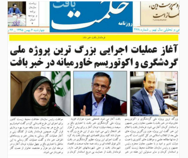 به گفته #فرماندار_شهرستان_بافت قرار است هزار شغل جدید ایجاد شود و همای سعادت بر دوش مردم این منطقه بنشیند. منطقه ای که در حال حاضر در زیر مشکلات ناشی از روستای هدف گردشگری و نبود زیرساخت لازم دچار بحران زیست محیطی شده است و از قضا راه اندازی آنهم با همین شعارهای عامه پسند صورت گرفت.